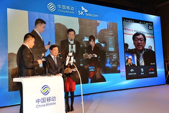 成都高端網(wǎng)站建設(shè)—在中國(guó)移動(dòng)-SK Telecom 4G高清音視頻互通儀式上,中國(guó)移動(dòng)通信集團(tuán)公司李正茂副總裁點(diǎn)擊4G手機(jī),現(xiàn)場(chǎng)即刻傳出來(lái)自韓國(guó)首爾的聲音,兩端的視頻通話畫(huà)面通過(guò)WiMo無(wú)線同屏共享技術(shù),第一時(shí)間同步在巨大的LED顯示屏上。在三星、華為、諾基亞等國(guó)內(nèi)外通信專(zhuān)家和眾多嘉賓的共同見(jiàn)證下,李正茂副總裁與韓國(guó)SK Telecom公司崔振圣(Choi, Jin Sung)副總裁完成了全球首個(gè)TD-LTE與LTE FDD商用網(wǎng)4G VoLTE高清音視頻通話。隨后,中國(guó)移動(dòng)浙江公司鄭杰總經(jīng)理在杭州分會(huì)場(chǎng)通過(guò)VoLTE與首爾進(jìn)行了音視頻通話,中國(guó)移動(dòng)四川公司簡(jiǎn)勤總經(jīng)理與身在杭州的浙江公司劉堯根副總經(jīng)理進(jìn)行了互動(dòng)。至此,全球首次中韓兩國(guó)三地4G VoLTE高清音視頻互通成功!