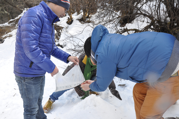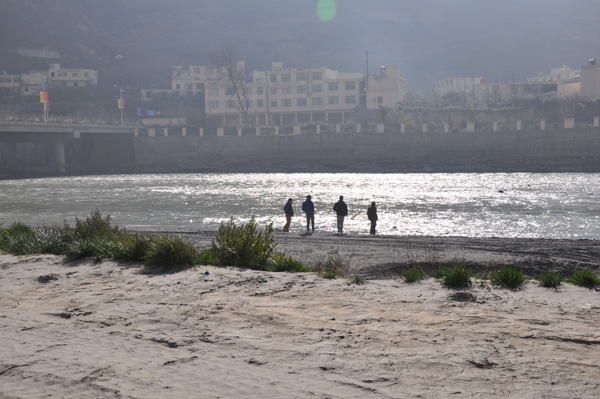 陽光明媚,讓在成都霧霾天氣下待久了的我們瞬間雀躍起來,途中經過一條不知名的河流,大家高興的玩了起來~~~