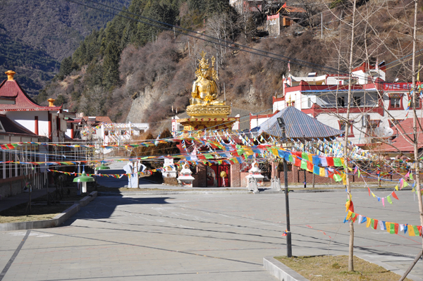 由于時間還早,我們決定先去米亞羅景區,初冬的天氣已然看不到紅葉了,但是金燦燦的大佛,隨風飄動的經幡,讓我們感受到了異域文化。